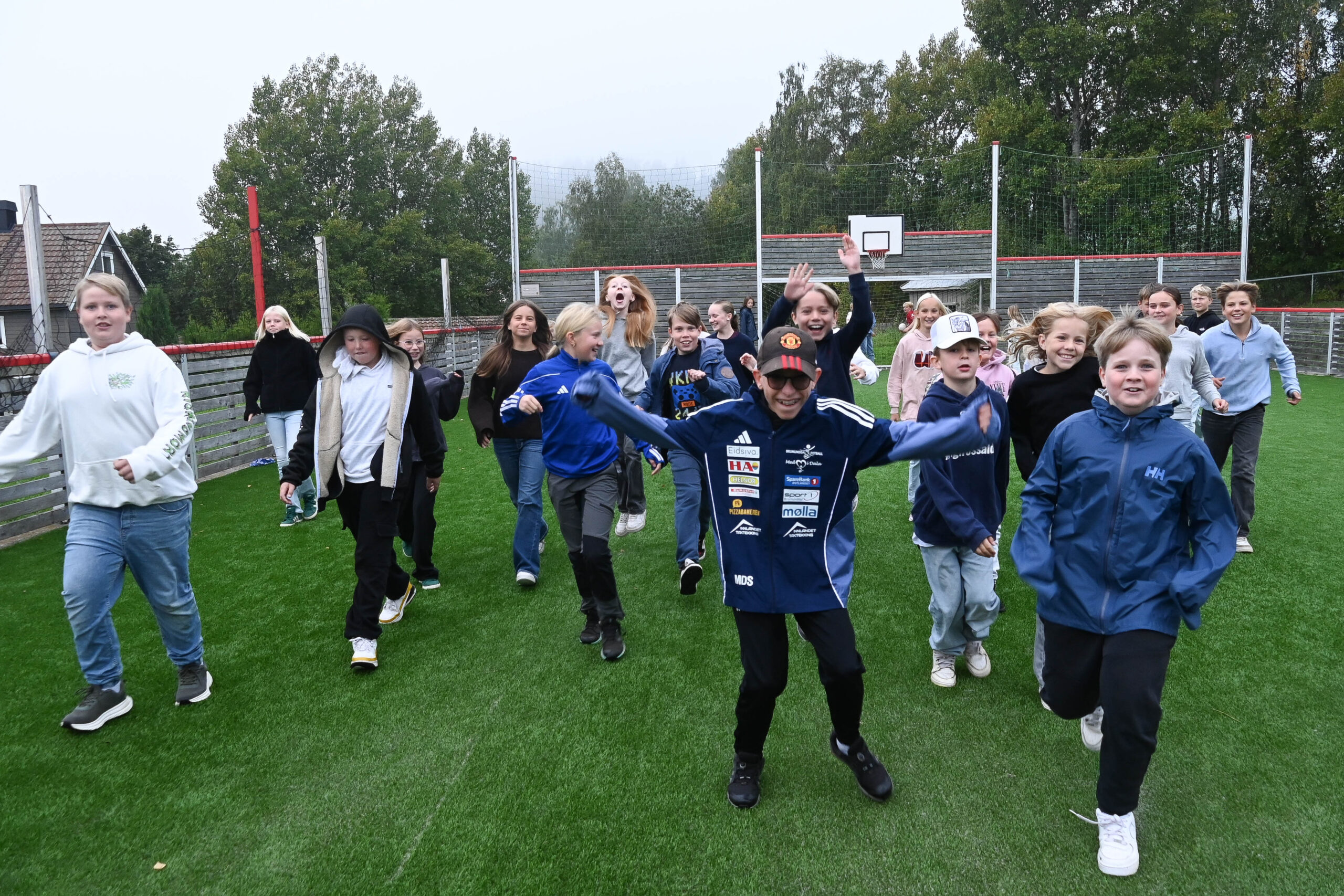 Kjempemessig dugnadsinnsats fra FAU, når ballbingen på Kirkekretsen skole ble restaurert høsten 2025. Her slippes elevene innpå igjen, med barnebarnet Anton i 7ende klasse helt